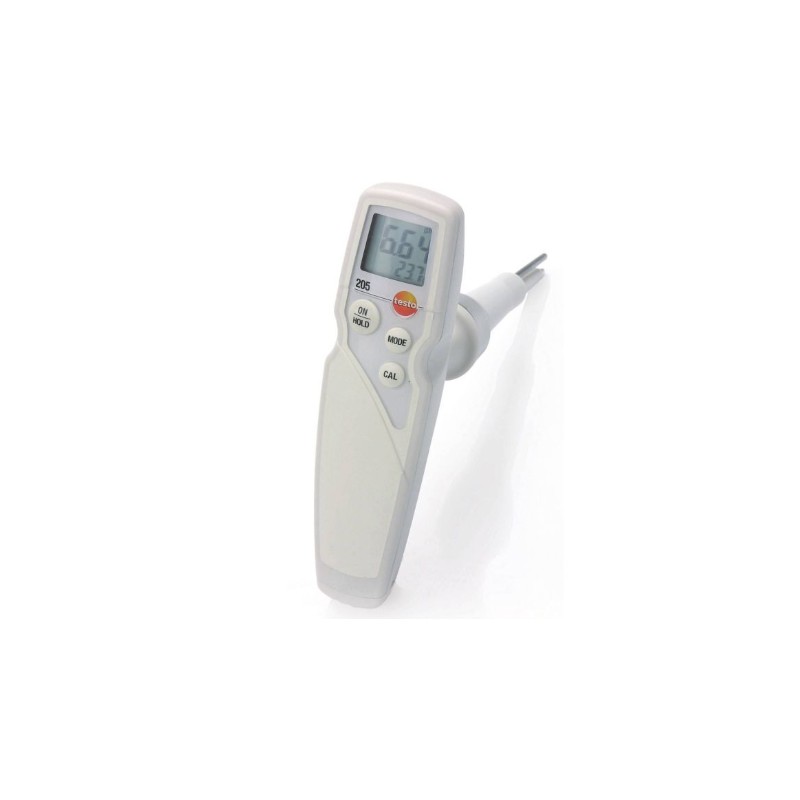 - The testo 205 enables pH measurements to be carried out in semi-solid media. The integrated temperature sensor ensures precise temperature compensation, and therefore accurate pH measurement